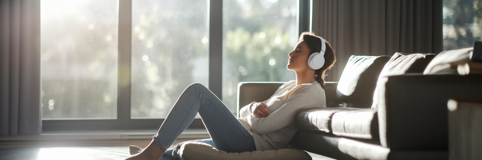 - Set Your Space: Find a comfortable spot where you won’t be interrupted for a few minutes. This could be a cozy chair, your bed, or even a quiet corner of your office. Headphones can help immerse you in the sound, but speakers work just as well if you prefer a more open feeling. The goal is comfort, not perfection. You can even turn everyday routines into mindful moments, like trying a shower meditation, which we explain in our step-by-step guide.